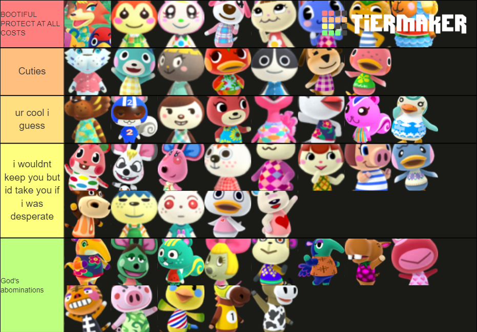 My Personal Animal Crossing Villagers Tier List Full Bias R Animalcrossing